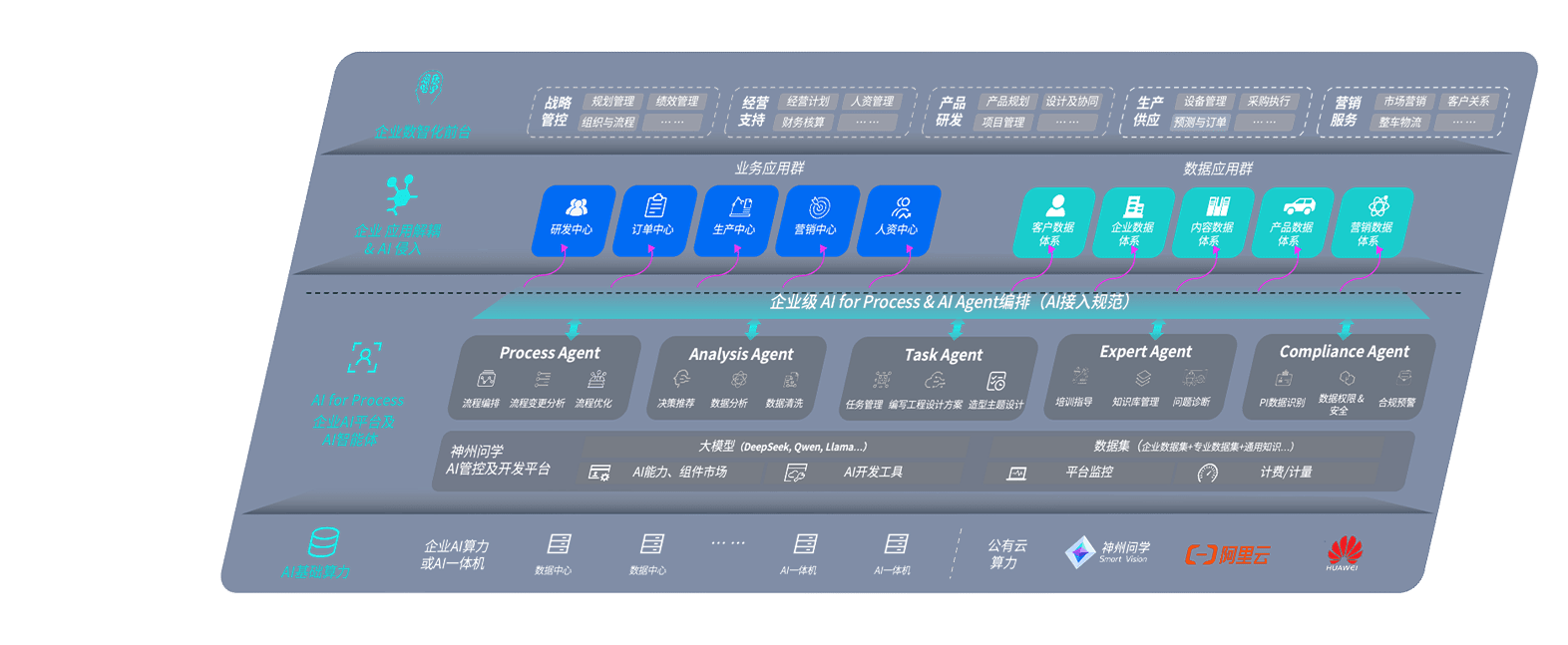 尊龙z6问学智车解决方案是一套基于AI技术的汽车行业智能化系统,,,,覆盖从底层算力到顶层AI应用的全栈方案。。。方案由算力层、、模型层和应用层组成:算力层,,,方案支持多种一体机配置,,具备云端灵活部署、、、多云适配以及动态优化计算资源的能力;模型层,,,尊龙z6问学平台版提供了企业级AI应用一站式构建与管理平台,,,,支持基于后训练强化技术的汽车企业专属模型的训练、、评测和运营;应用层,,尊龙z6问学DeepSeek版提供包括超级员工、、、智能招采、、智能营销、、、、智能客服、、AI for BI等一系列解决方案,,,,可助力汽车行业实现数字化转型,,,,让管理更智能、、响应更敏捷。。。。